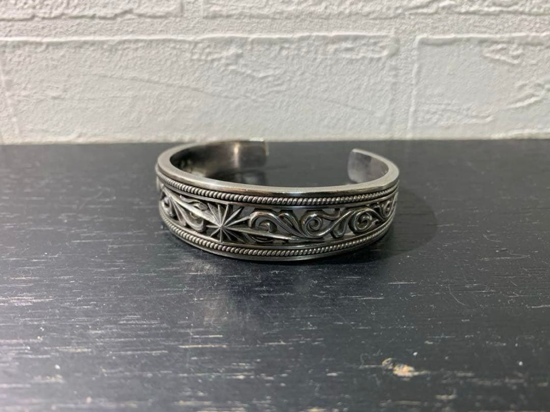 Nonnative×End Dweller Studs Bangleオンラインショップにて購入外箱破損ありSIZE: Free 新品にて購入後、定期的に着用素材:Silver 925一度当方にて、くすみ除去を致しました。内周り幅 縦:6cm 横:4cm バングル入れ口幅:3cm重さ:84g購入したのが2016年前後だったかと思いますが、当商品の発売はネット遡ると2015年と推測されます。その他、ご質問事項ございましたら対応致します。お気軽にお問合せ下さいませ。※当方都合上、発送が予定日数を前後すること、予めご了承下さい。